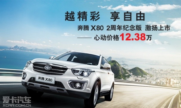 作为一汽奔腾征战SUV领域的首款车型,奔腾X80凝聚了一汽奔腾研发团队多年心血和努力,获得了广大消费者的认可。从车型的命名不难理解,2周年纪念版是对消费者的感恩回馈之作。而12.38万元的合理售价,势必能吸引更多消费者的目光。对一汽奔腾的拥趸而言,2周年纪念版是一个更具价值的“纪念品”。