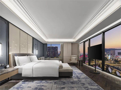 酒店拥有262间典雅舒适的客房及套房,其设计和装饰巧妙融入了王阳明心学理念的元素,同时不失精致简洁的现代感。透过开阔的落地窗,宾客可以尽情欣赏城际风光及迷人的江景。